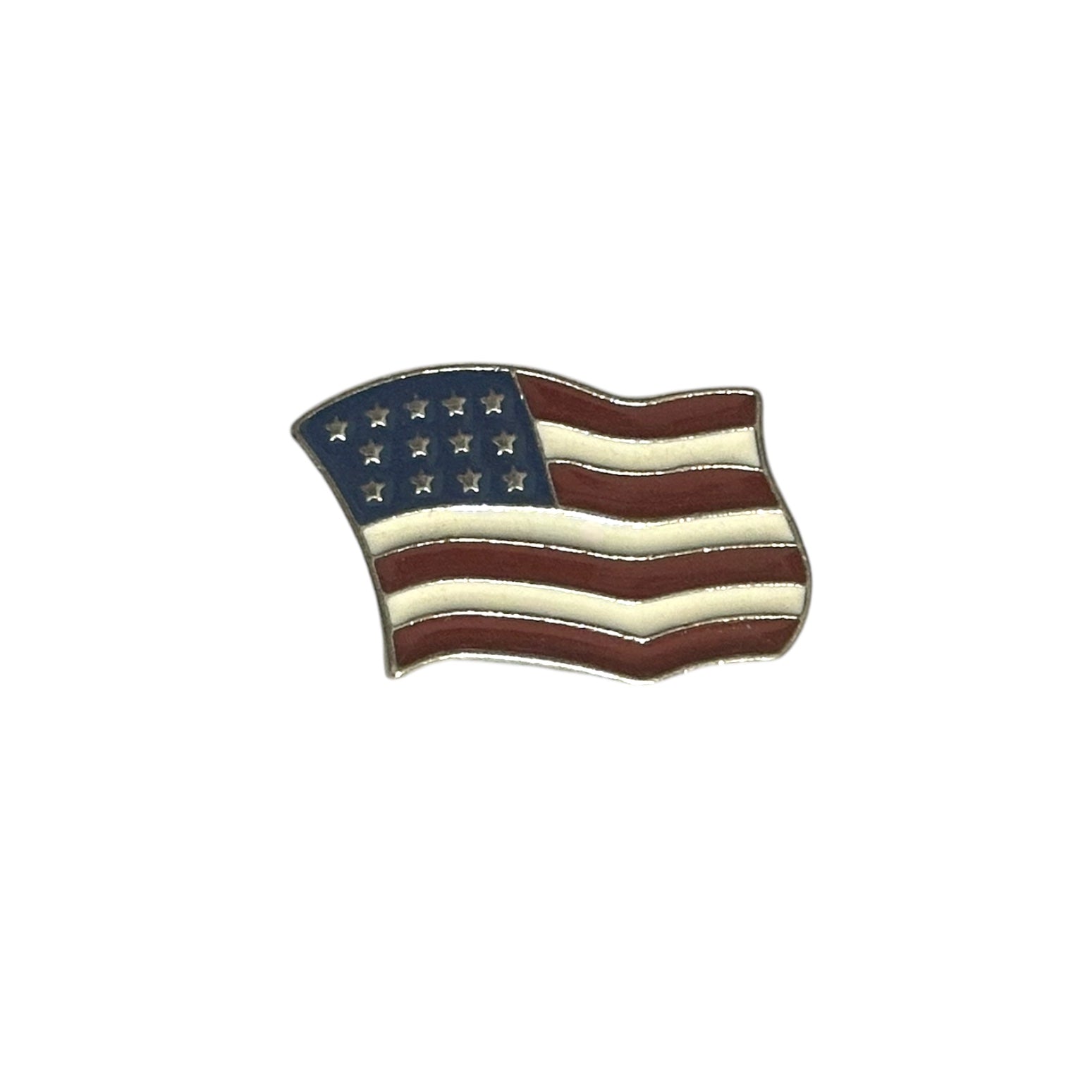 This is an American Flag concho with a screw-back attachment, measuring 1" x 3/4". It features a detailed representation of the U.S. flag, complete with stars and stripes, symbolizing patriotism and national pride.