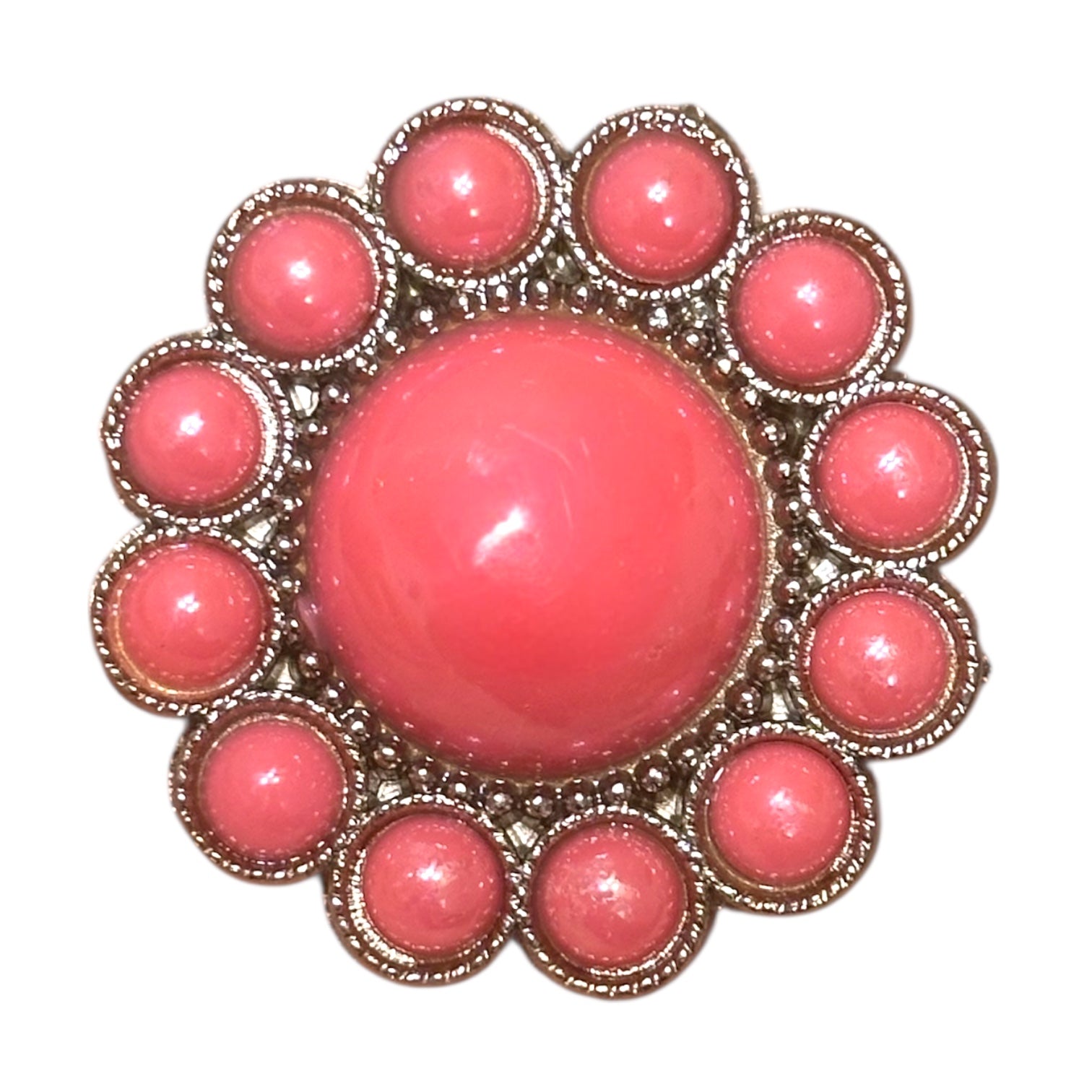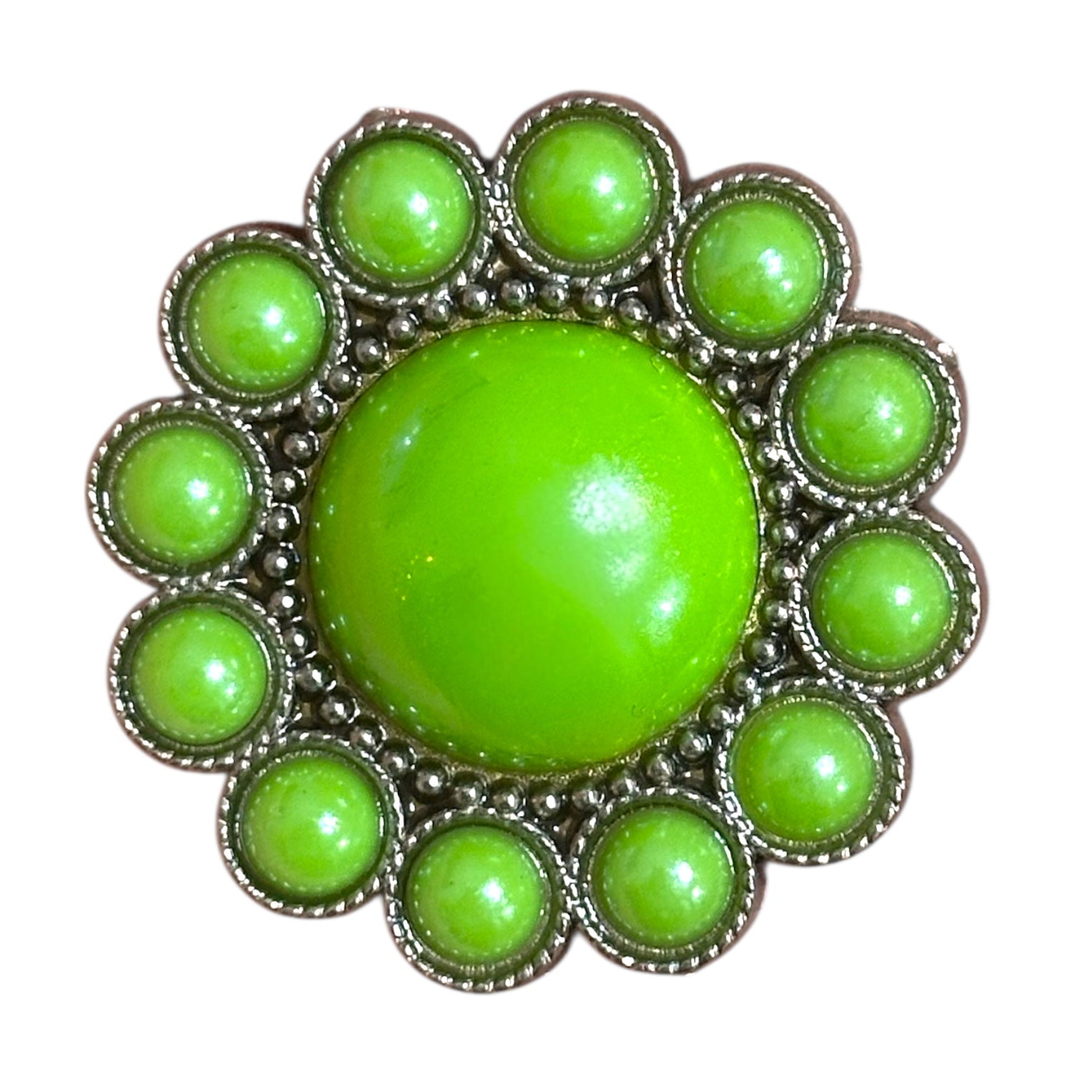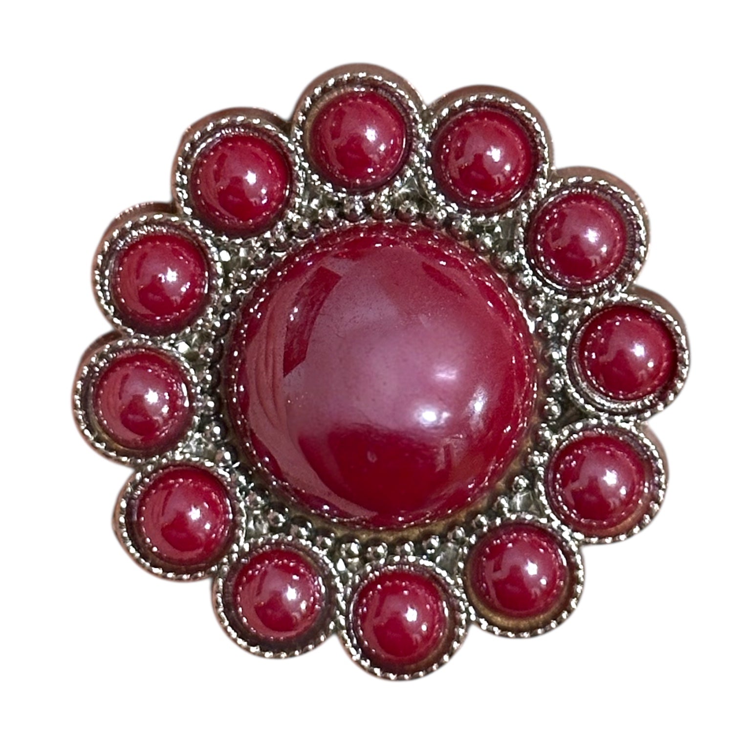 This beautifully “beaded” screw back concho comes in 4 different colors. Small cabochons surround a large center cabochon. This concho will enhance any product. Pair with the NEW marble jewel line. Available in 1" and 1 1/2".