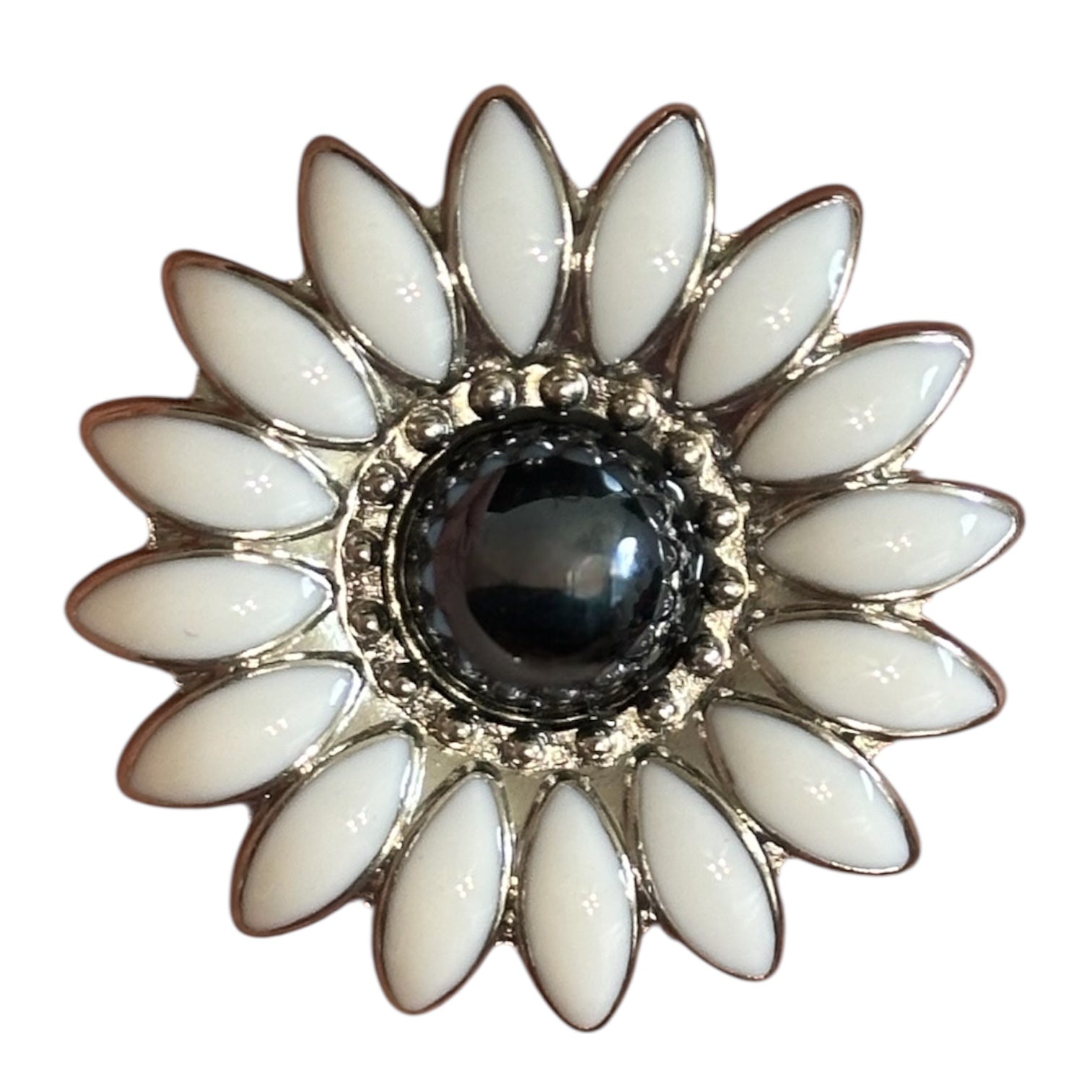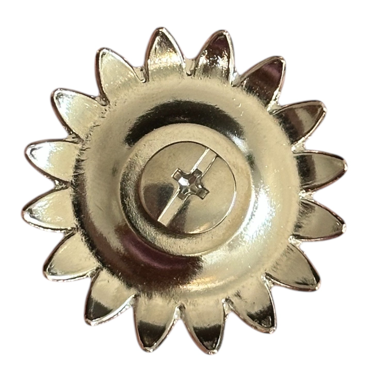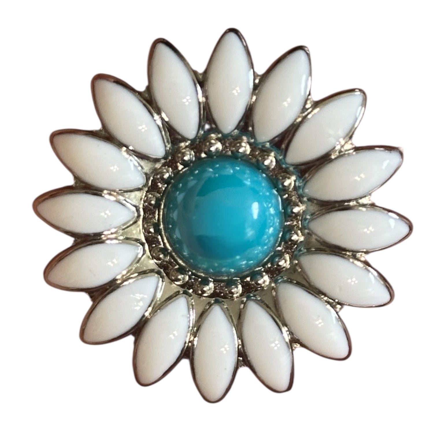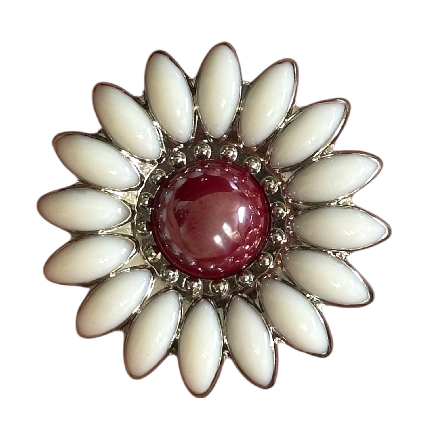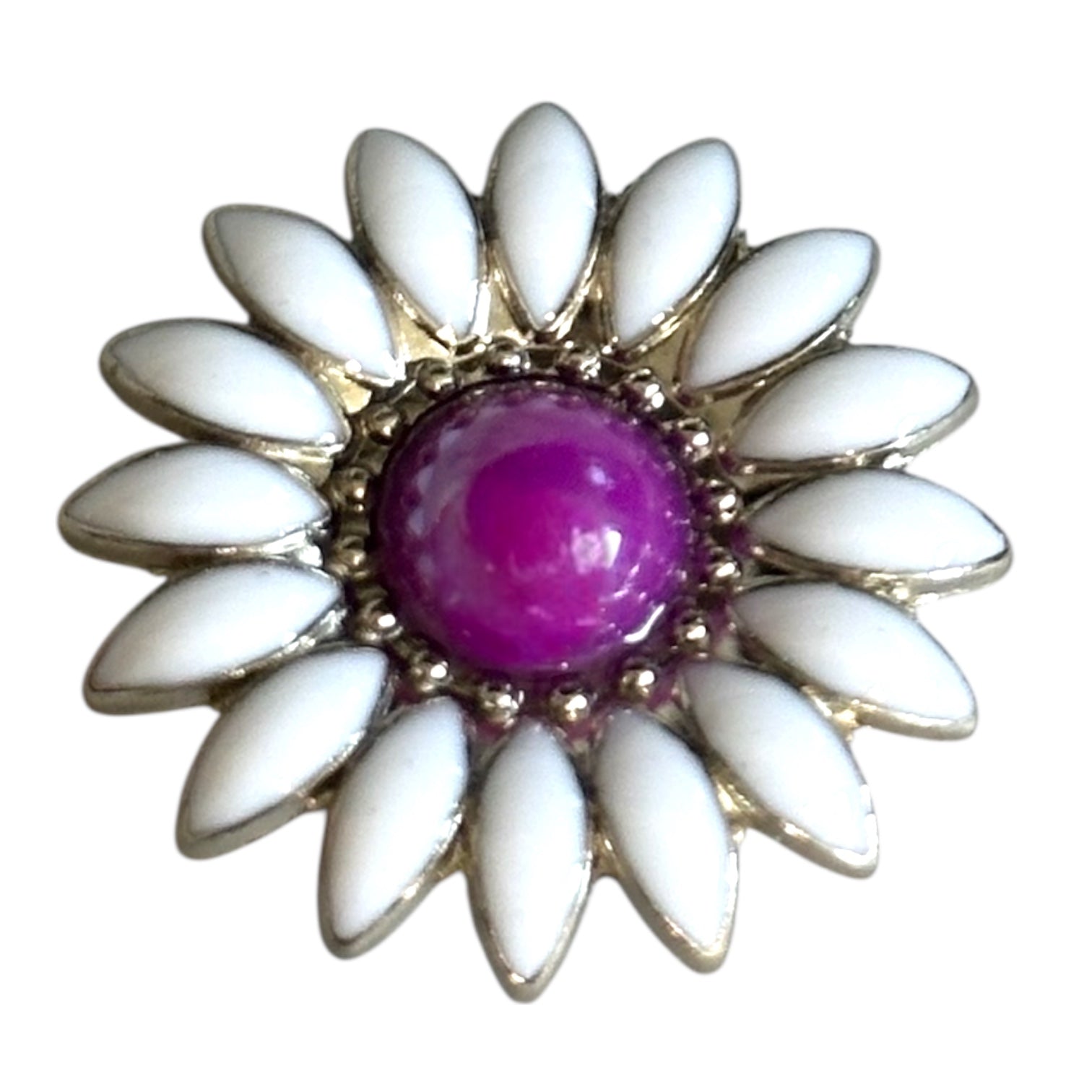 This is a daisy-shaped concho with a screw-back attachment, available in three sizes: 3/4", 1", and 1 1/4". It features a classic flower design, with delicately crafted petals radiating from a vibrant center, creating a timeless floral look.