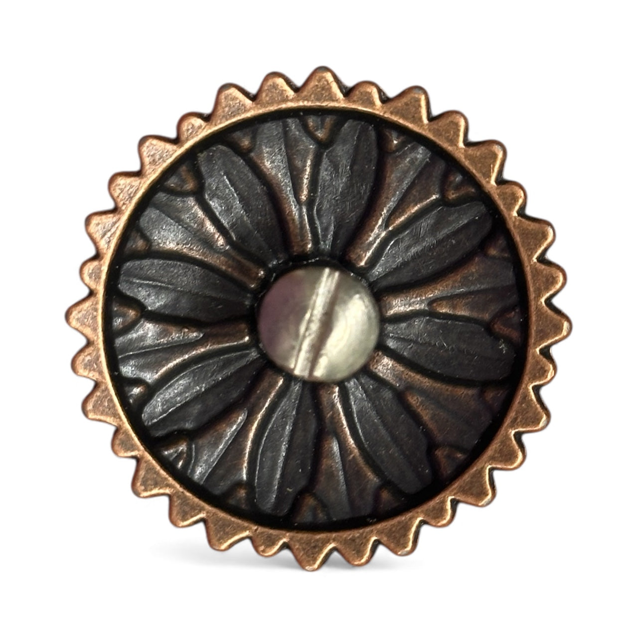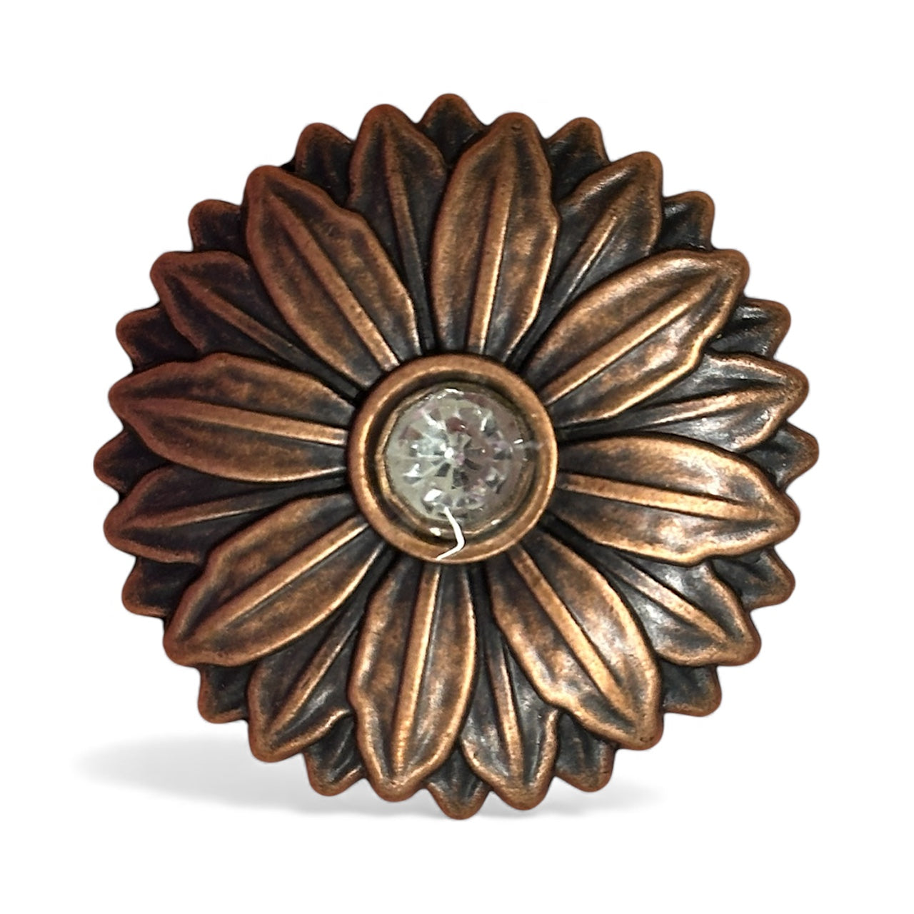 1 1/4″ Antique Copper sunflower Concho with a crystal center.