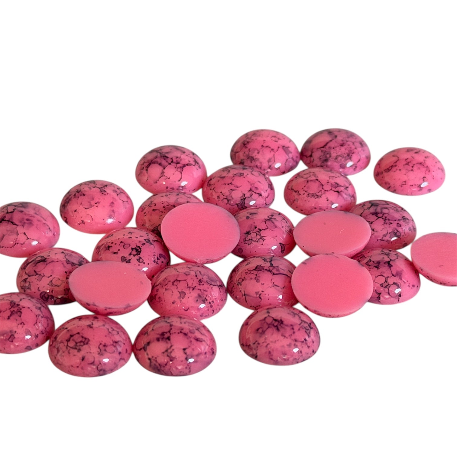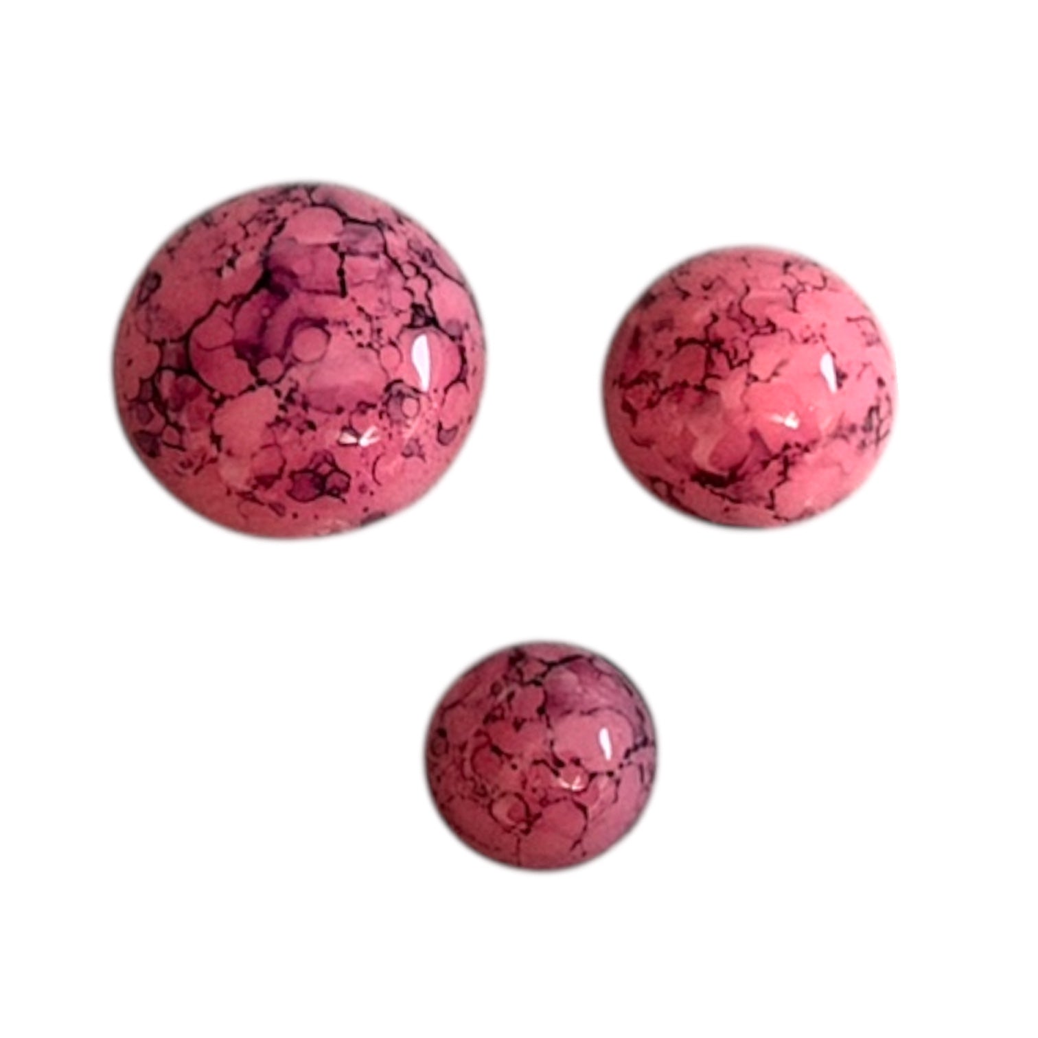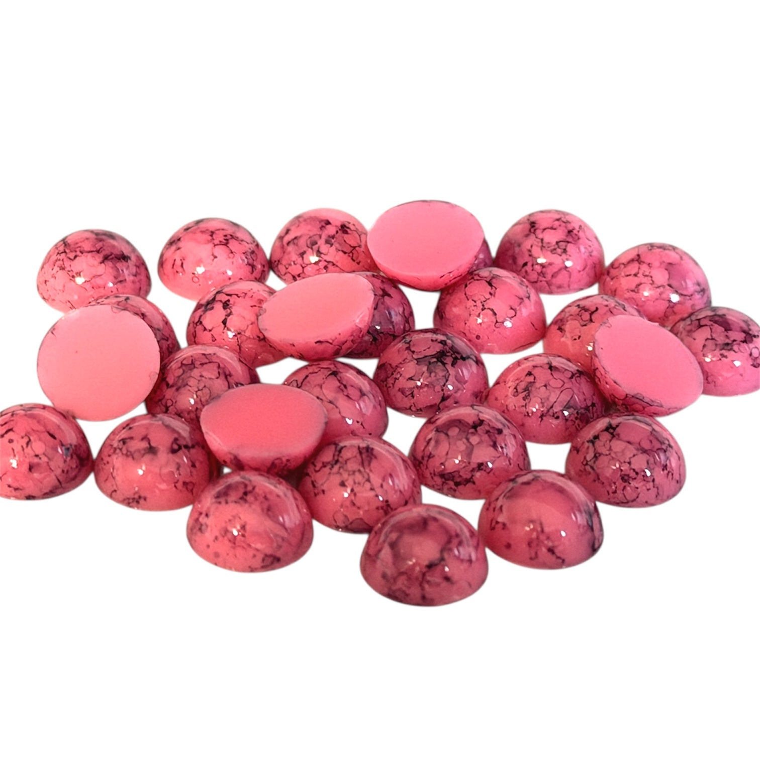 Acrylic marble flat back pink cabochons sold loose and available in multiple sizes. Commonly used in leathercraft applications such as belts, collars, tack, and bags, these cabochons are also suitable for a wide range of craft and jewelry projects.