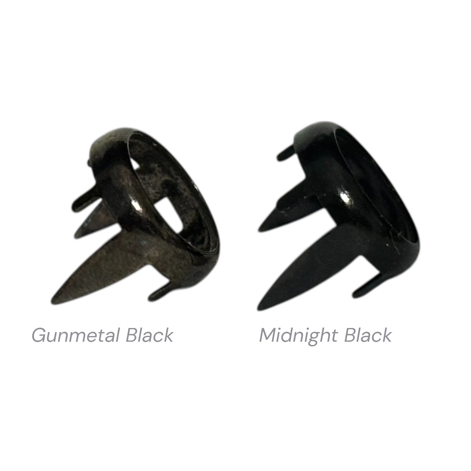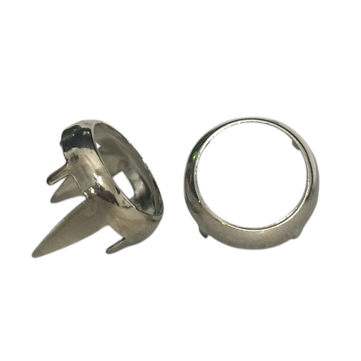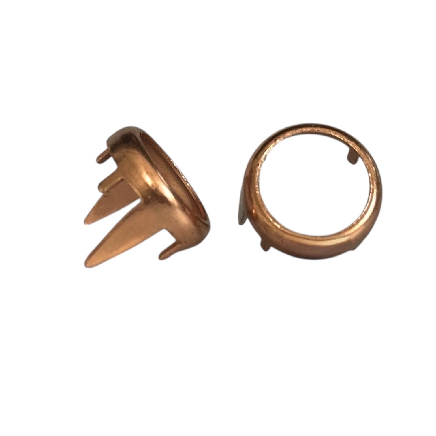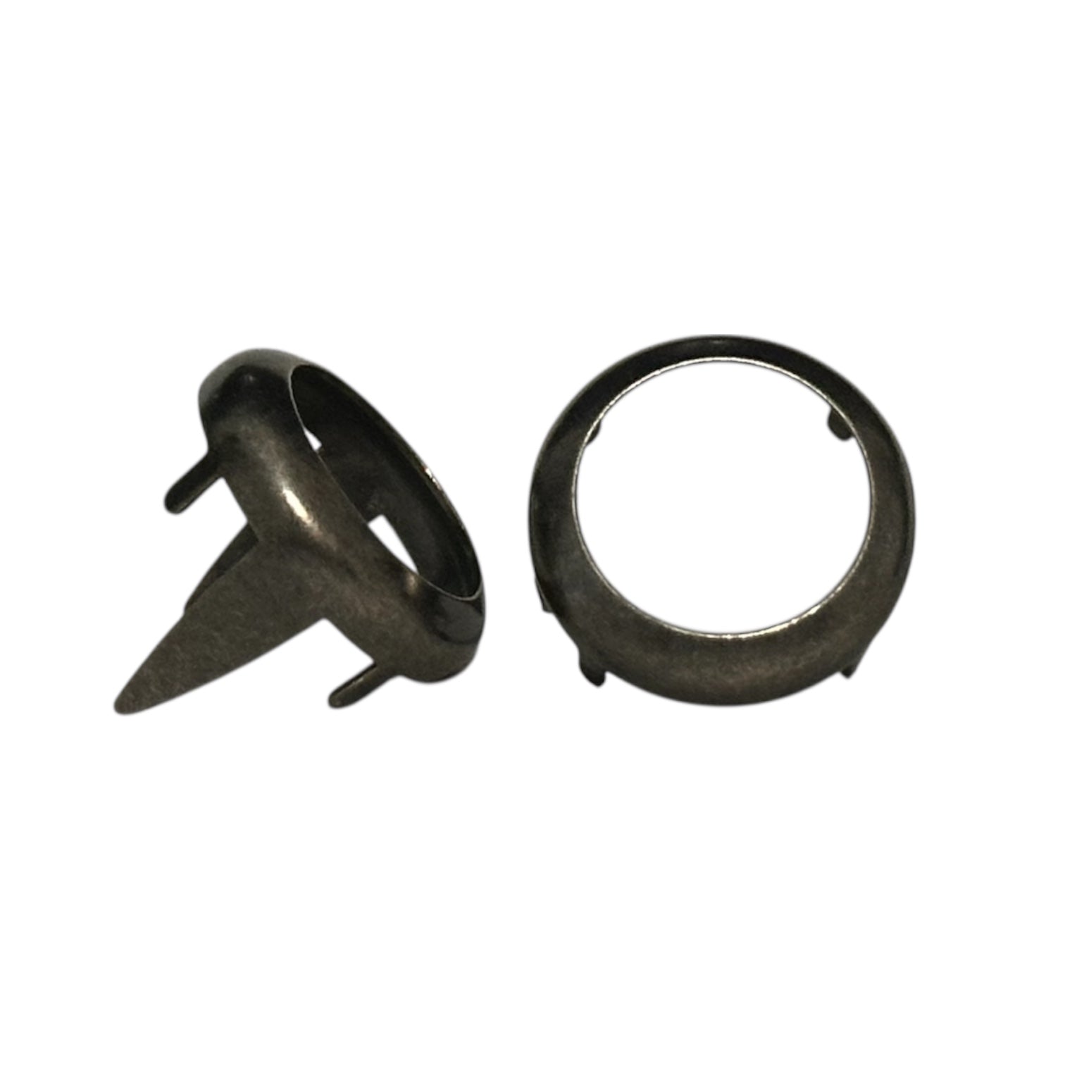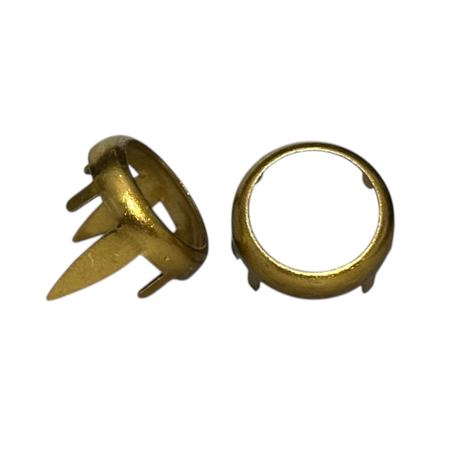 11mm Ring Spot (1/2”, SS48) with two 5/16" long legs for leather rim setting and four folding claws to hold large flat-back crystals or cabochons size SS48. Great for collars, bags, or bold decorative elements. Available in multiple finishes.