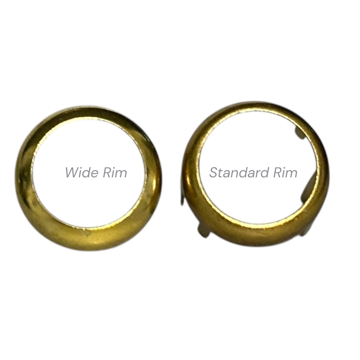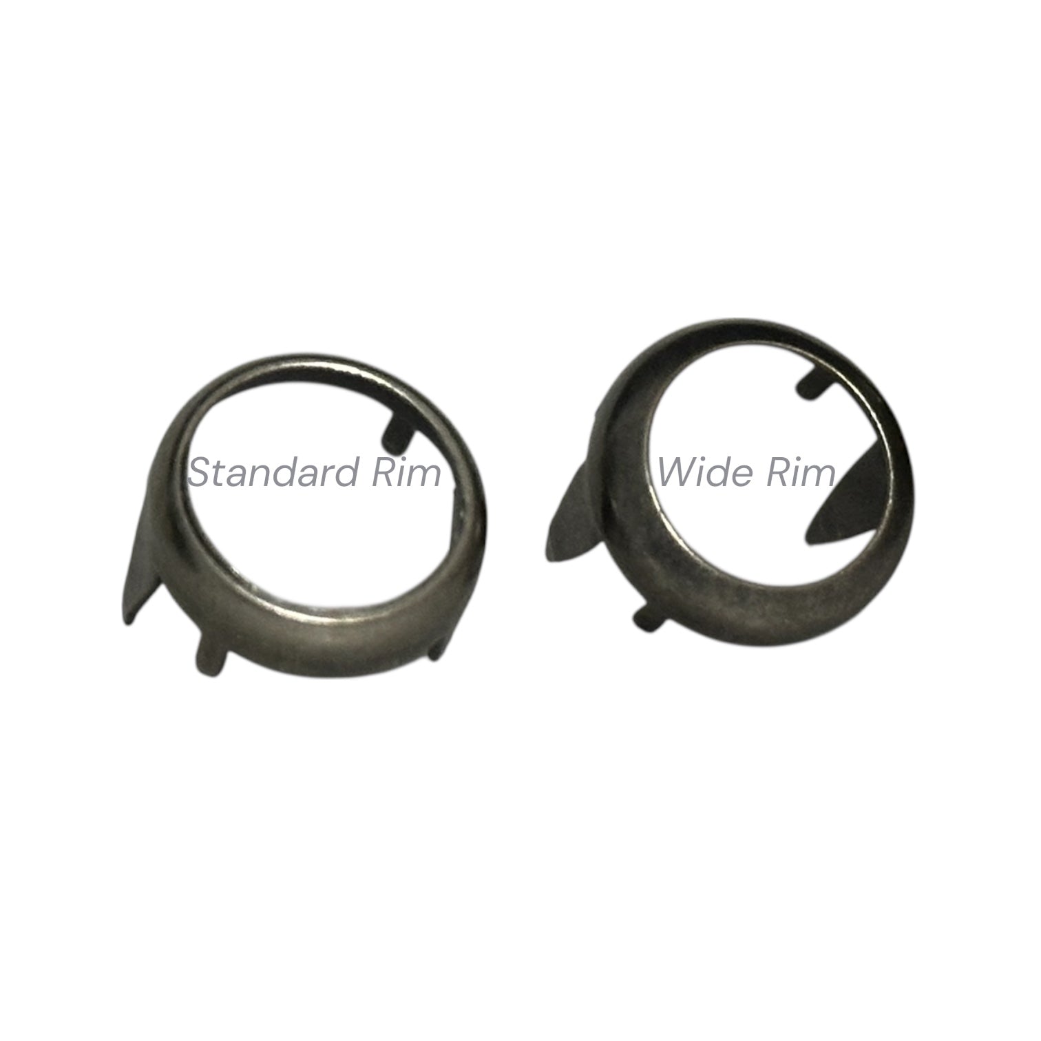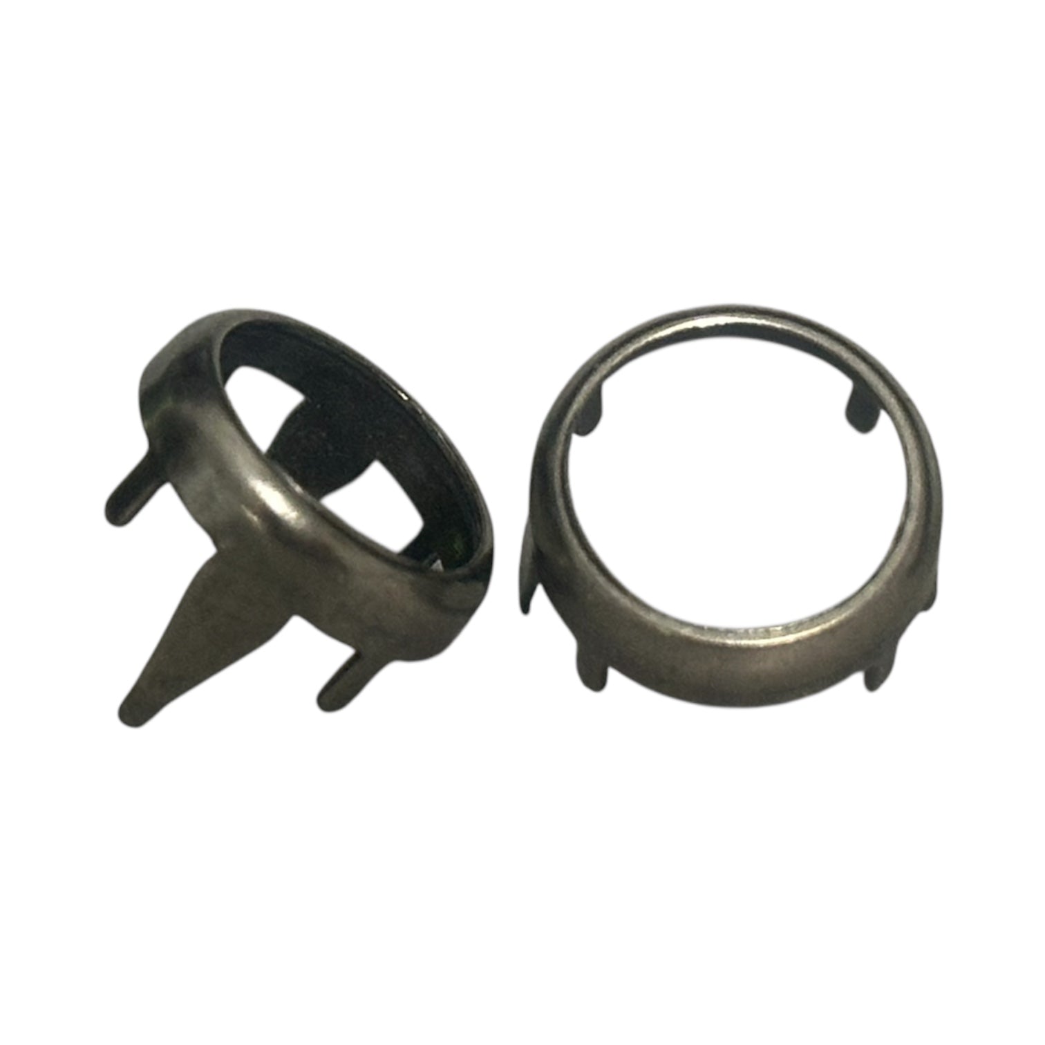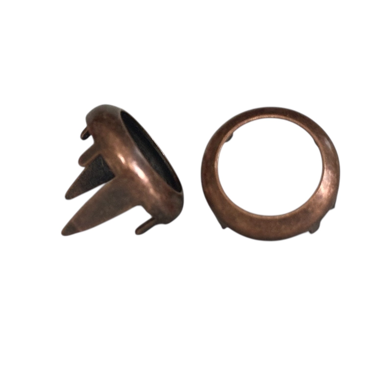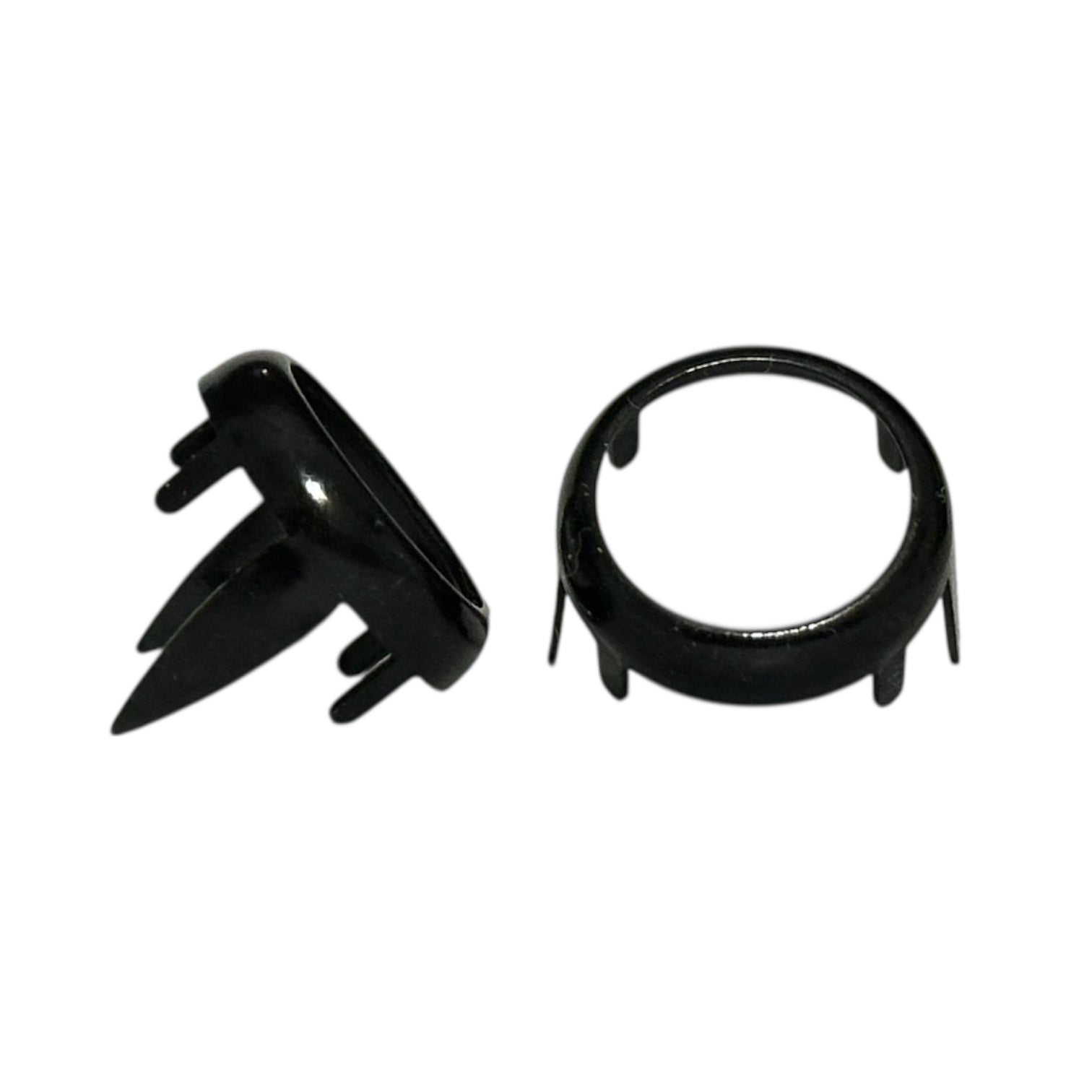 11mm Ring Spot (1/2”, SS48) with two 5/16" long legs for leather rim setting and four folding claws to hold large flat-back crystals or cabochons size SS48. Great for collars, bags, or bold decorative elements. Available in multiple finishes.