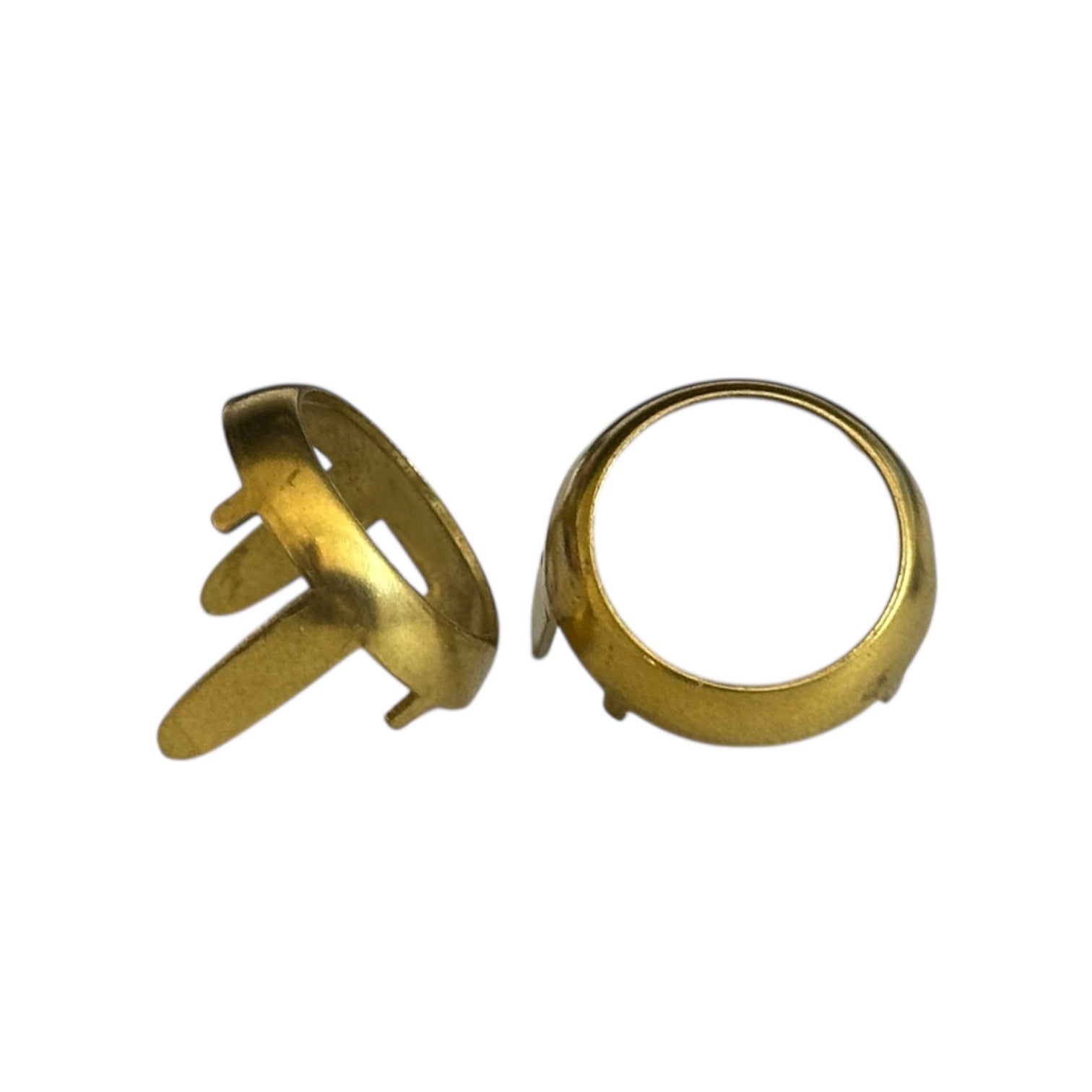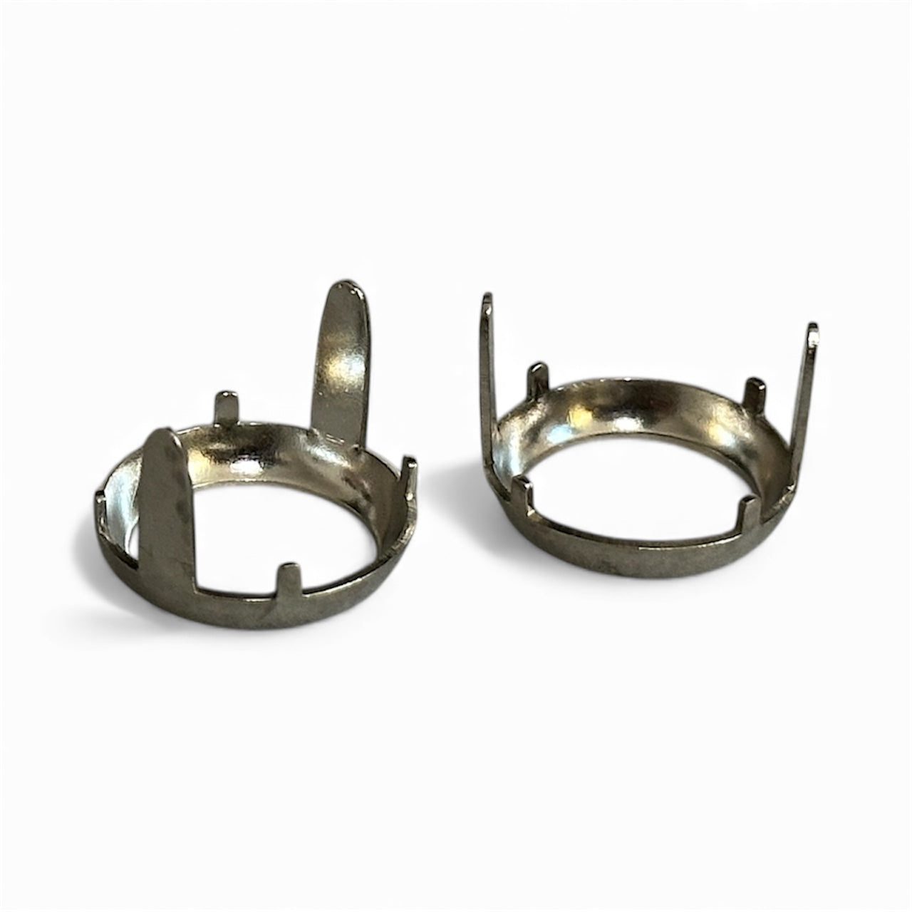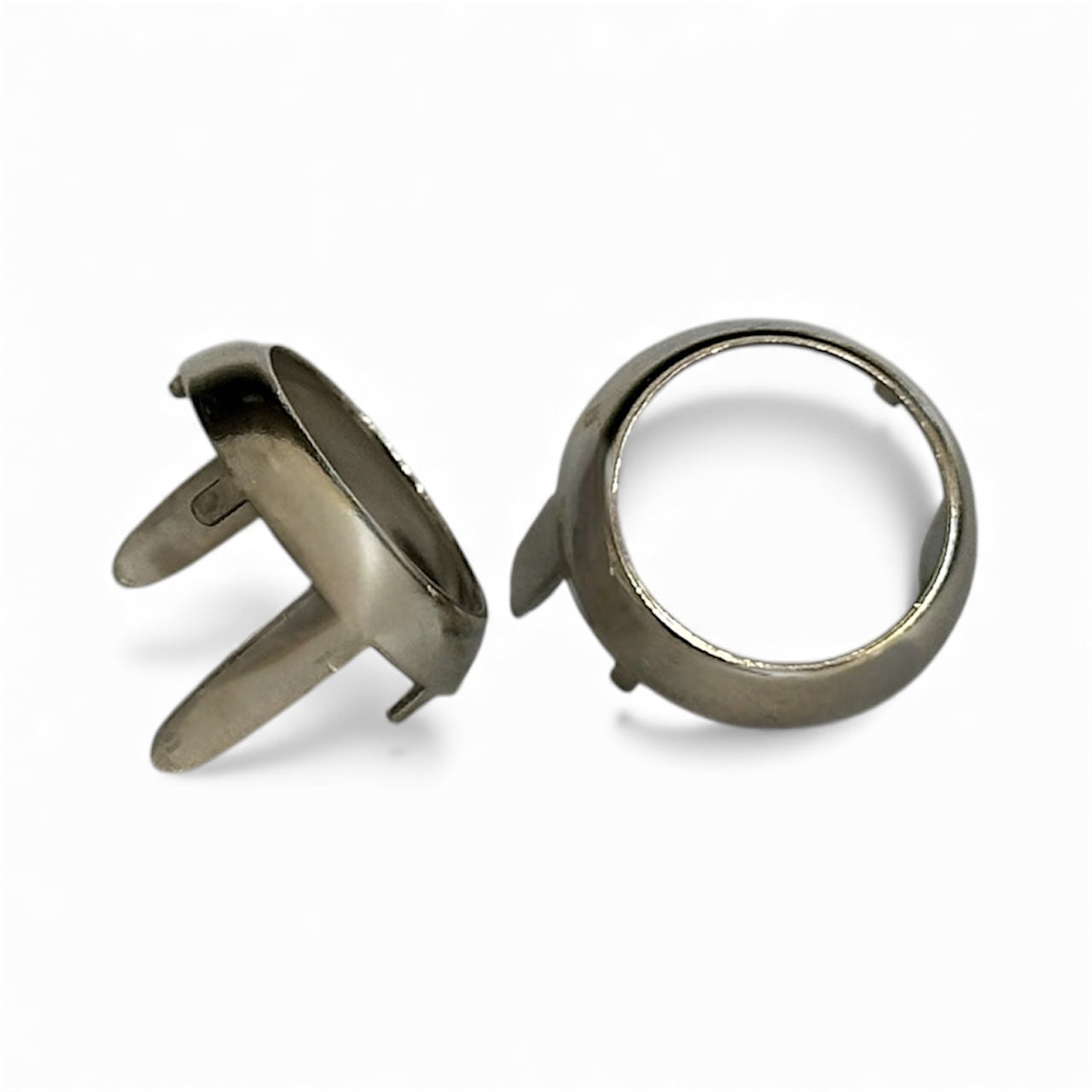13mm Ring Spot (9/16") with two 5/16" long legs that secure into leather and four claws that fold over a flat-back crystal, cabochon, or pearl. Multiple finishes available.